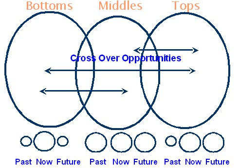 ![]() Those at the top, middle, and bottom do get a chance to encounter one another from time to time. Predominately, the upper middle class meet the wealth class in their place of worship, high-end department stores and boutiques, at social gatherings, and at private clubs. The middle class encounters people from poverty class in their place of worship, in shopping malls, movie theaters, at community events, and at public recreation facilities such as public parks and pools. Additionally, all three classes encounter one another in the course of their workday. Butlers, gardeners, nannies, domestic staff, drivers, security guards, and delivery personnel often hail from poverty class, and are hired by the wealthy to oversee the more mundane duties of daily living. The middle class encounters people of poverty class when they order a meal at a fast food restaurant, hire a home health aide, purchase items from a Big Box store, or pick up their dry cleaning thanks to the fact that the working poor fill the front line positions in these establishments and service areas. When the wealthy require police protection, healthcare services, education for their children, require clerical assistance, and make purchases from high end stores they again encounter those from the middle class who provide professional services needed by the rich. The fact that the classes brush against one another in the course of daily living does little to diminish the fact that they live in separate worlds, sometimes barely noticing one another as they interface. Seldom are close relationships forged that would serve to influence the thinking of those of other classes. The division becomes even more apparent when you notice the size of the past, now, and future circles at the bottom of the illustration. As mentioned earlier, the poor think only about the present. Their future holds little promise, and their past is not usually filled with happy memories, so they take life as it comes with little focus on future planning. They seldom put back anything to save for tomorrow and use up whatever resources they come by almost immediately after receiving them, because life is so uncertain that tomorrow isn’t guaranteed to come. The middle class are constantly reminded to remember where they came from, and are encouraged to preserve the traditions of the past that got them where they are today. Their past is as important to their future as is their present, so they budget, put away a bit of savings, maintain their possessions, organize their affairs, and preserve long term relationships that add stability to their lives. Where the poor are survival oriented, the middle class is responsibilities oriented and attend to their present so they can build on it in the future. Retirement planning, for example, is valued primarily by the middle class who aim to live out their lives free of government dependence, with some left over to pass along to their offspring. Since most in the middle class live primarily from paycheck to paycheck, a fear of falling into poverty is a strong motivator to act responsibly now in an attempt to hang on to all they have and hold dear. The wealthy are often too busy enjoying today to worry about what happened in their family’s history. An embarrassment of riches and powerful connections keeps them from having to worry about falling out of their social class, so it matters little where the wealth came from in the first place. The wealthy are forward thinking individuals who are sometimes more rights oriented than responsibilities oriented. They are looking out for their future rights, and the rights of their children and grandchildren as they look for ways to extend their good fortune beyond this lifetime. They plan strategically for the future by funding endowments that will bear their name as living legacies of themselves in the world of art, commerce and culture. It is with relative ease that those in one class cast aspersions on those in other classes due to their differing past, present and future perspectives, each judging their way of thinking to be superior to the others. The poor can’t figure out why the middle class would spend their whole lives working just to die and pass their hard earned possessions onto someone else. Why they barely have time to enjoy today because they fear what will happen tomorrow! The middle class lacks an understanding of why the wealthy spoil their children instead of cultivating an earning mentality as they have done with their own children, and why they spend so irresponsibly, much like the poor, who seem to run through resources as if tomorrow will never come. Are the Classes Climbing Different Ladders?The Fifth Discipline Fieldbook[i] contains an interesting model, The Ladder of Inference that explains the ways in which culture, beliefs, and thinking interact to produce action.