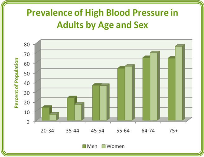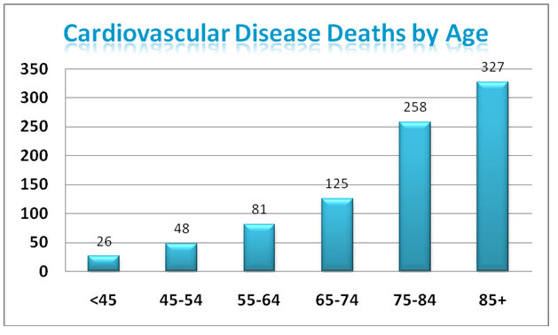 [QN.No.#7.Which of the following diseases are considered primarily age related?] The leading cause of death in 2004 among people age 65 and over was heart disease, followed by cancer, stroke, chronic lower respiratory diseases, Alzheimer's disease, diabetes mellitus, and influenza and pneumonia. Death rates for heart disease and stroke declined by approximately 44% since 1981; however, deaths from diabetes increased by 38% and death from lower respiratory diseases also increased by 53% (Federal Interagency Forum 2008, 26). ![]() Please note that the information on age-related diseases in this course is to aid you in understanding your clients' needs. Treatment options are for your information only; clients with any of these problems should be under a physician's care. You also need to be aware that diminished physical and/or mental ability may make it hard for a client to follow a treatment plan; limited financial resources may affect the choice and use of medication (NDIC 2002). Cardiovascular Diseases (CVD)An estimated one in three American adults has one or more types of cardiovascular diseases (CVD). These diseases are the No. 1 killer in our nation. The diseases that are collectively known as CVD are high blood pressure, coronary heart disease (which includes heart attacks and angina), heart failure, stroke, and congenital cardiovascular defects. The American Heart Association (2009) shows the prevalence of CVD in adults by age and sex (these data include coronary heart disease, heart failure, stroke and hypertension)--- ![]() --- and the percentage breakdown of deaths from cardiovascular diseases from the most recent statistics available (AHA 2009a): ![]() *Not a true underlying cause High Blood Pressure The official definition of high blood pressure (HBP) is systolic pressure of 140 mm Hg or greater and/or diastolic pressure of 90 mm Hg or higher, taking antihypertensive medicine, or being told at least twice by a physician or other health professional that you have high blood pressure. If you have a hard time remembering which number is systolic and which is diastolic, think of the initials of South Dakota---S (or systolic) comes before D (or diastolic). Up to age 45, more men than women have HBP. For the next nine years, until age 54, the percentage of men and women is similar. After that, a much higher percentage of women than men have the problem (AHA 2009a). The major problems of HBP are that the relative risk for stroke is about four times greater than for those with normal blood pressure, the likelihood of developing heart failure is two to three times higher, and there is a shorter life expectancy. ![]() Coronary Heart Disease Coronary heart disease (CHD), also known as coronary artery disease (CAD), is a narrowing of the small blood vessels that supply blood and oxygen to the heart. This narrowing disallows an adequate amount of blood to get to the heart, and may cause a variety of symptoms (Weinrauch 2008a):