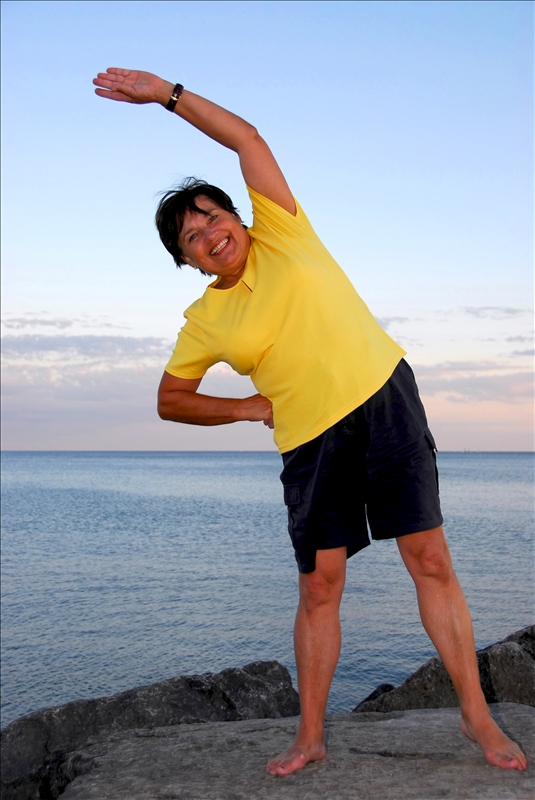 ![]() According to the BríanMAC Sports Coach Website (2009), dynamic stretching exercises are "slow controlled movements through the full range of motion" and are most suitable for warming up. Static stretching exercises are "for cooling down at the end of a training session when stretches are held for 10 seconds or to improve the mobility and range of movement when stretches are held for 30 seconds." The 30 second movements are the most basic ones for the elderly, although the "30 seconds" may need to be reduced, especially when beginning a flexibility exercise program. Loss of StrengthA number of researchers have documented that many older adults experience changes in the musculoskeletal system, usually associated with decline of muscle strength, although occasionally there were gains in strength. Gains cause no problems, but declines can. Endurance, the ability of the muscle to contract steadily at levels below what the individual is maximally capable of, also decreases with age, but generally not as much as muscle strength (Shumway-Cook and Woollacott 2006, 219). Although it has been shown that there is a major association between strength and physical function, it has more recently been shown that muscle power is even more important to physical function (Shumway-Cook and Woollacott 2006, 220). Exercises in muscle power include jumps, marches, twists, and medicine ball exercises rather than strength training with weights (ExRx.net n.d.). Poor Posture![]()