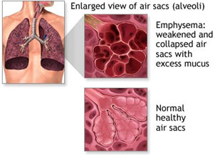[QN.No.#19. Treatments technique which is usually used only for people with severe urinary incontinence who have been unable to respond to behavioral techniques or medications:] Many people do not tell their doctors about the urinary incontinence. They may be "used to it" and assume it is a necessary part of aging, or they may be embarrassed. You will need to be on the lookout for signs---verbal or otherwise---of UI, or you may need to ask in order to help your client find the best resolution to this problem. Chronic Obstructive Pulmonary Disease (COPD)![]() However, COPD is now considered a disease of a multisystemic nature, not just limited to the lungs. Research has found elevated Picture courtesy of A.D.A.M. degrees of systemic inflammation and cardiovascular, neurologic, psychiatric, endocrine system dysfunction, and skeletal muscle dysfunction associated with COPD (Stone and Nici 2007). Chronic obstructive pulmonary disease is the fourth-leading cause of death in the United States (NHLBI 2009). In most cases, long-term smoking is the cause of COPD. Not smoking or quitting smoking soon enough could prevent COPD. Unfortunately, once symptoms arise, the lung damage cannot be reversed. There is no cure. The primary focus of treatments for COPD is to control symptoms and prevent further damage (Mayo 2007b). The lowest percentage (8.8%) of adults that currently smoke is the elderly, folks age 65 and over (Nazir et al 2007). [QN.No.#20. Which disease is the fourth-leading cause of death in the United States:] However, the mean inpatient, outpatient, and pharmacy costs of patients aged 65+ who have COPD are more than twice those of age- and gender-matched control subjects who do not have COPD (Mapel et al 2000). Risk factors for COPD are (Nazir et al 2007):